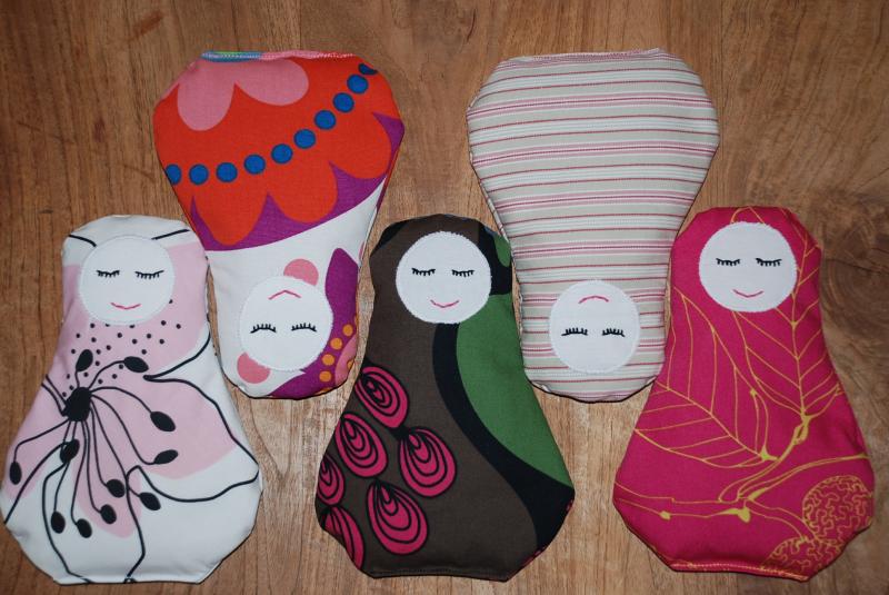 All dolls and rabbits are made of cotton and filled with barley or rice.